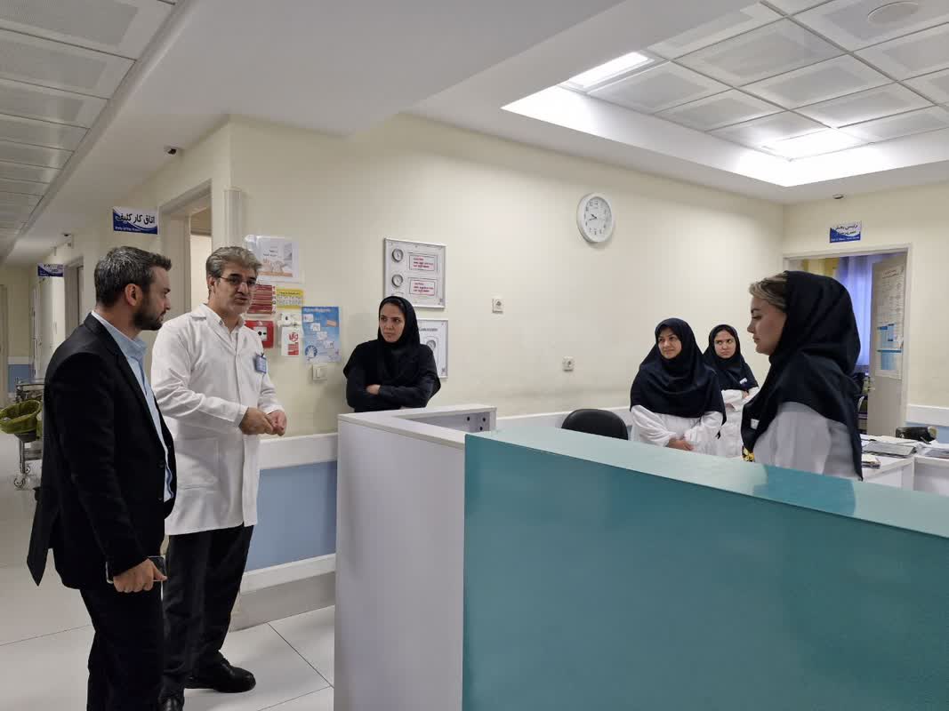 مورخ چهارم خرداد ماه بازدید مدیر محترم مرکز، آقای دکتر عادل به همراهی مدیر محترم پرستاری بیمارستان از بخشهای مختلف به منظور آشنایی با بخش ها و همچنین بررسی بهبود کیفیت خدمات و ارتقای سطح رضایتمندی بیماران انجام گرفت.