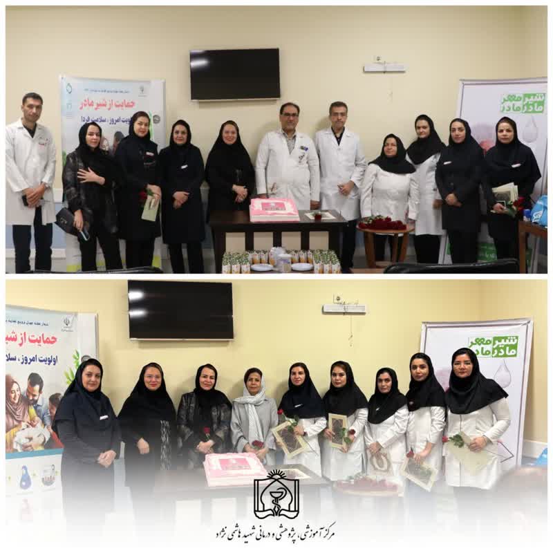 قدردانی از همکاران فعال: در ادامه مراسم، از تلاشهای ارزشمند همکارانی که در ترویج تغذیه با شیر مادر و اجرای موفق برنامههای حمایتی از شیردهی مادران نقشآفرین بودند، تقدیر به عمل آمد.
