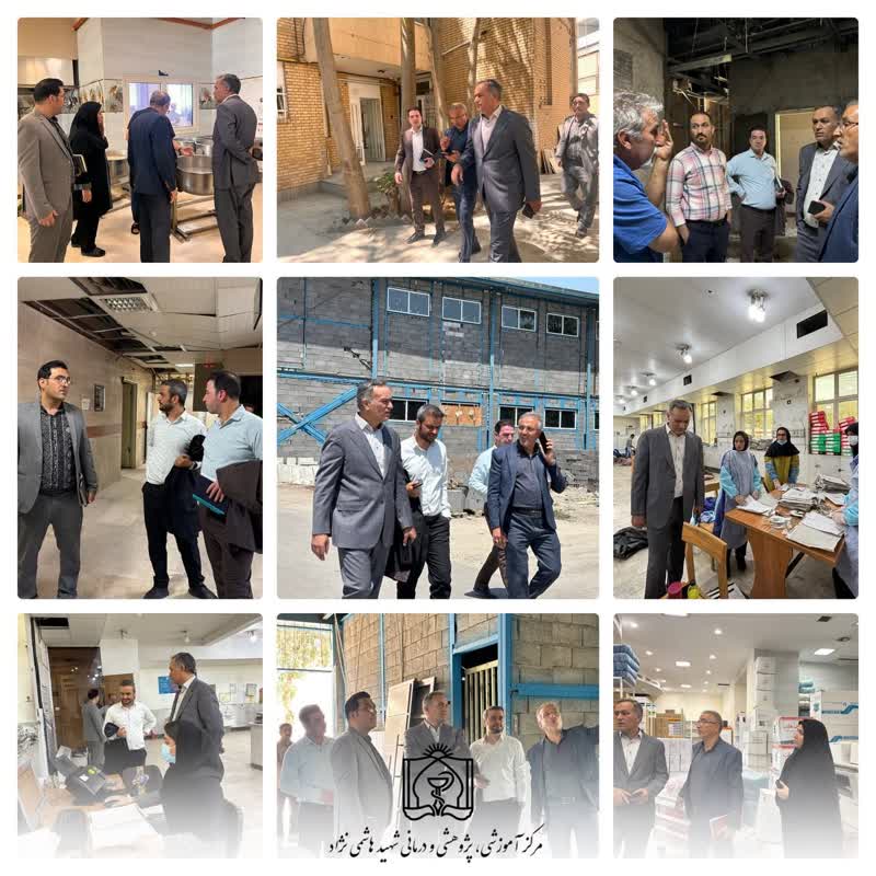 بهمنظور بهبود کیفیت خدمات و ارتقای رفاه بیماران و کارکنان، دکتر ابراهیمیپور، رئیس محترم بیمارستان، به همراه تیم مدیریتی از پروژههای عمرانی در حال تکمیل بازدید بعمل آوردند. این پروژهها شامل مهدکودک ویژه فرزندان کارکنان، نصب سومین دستگاه سیتیاسکن برای افزایش خدمات رسانی مطلوب، توسعه بخش بایگانی، تجهیز انبار مرکزی، بهسازی آشپزخانه برای ارائه غذای با کیفیت، و روند امحای پروندههای بستری است. در این بازدید، دکتر عادل مدیر محترم مرکز، از راهاندازی قریبالوقوع این طرحها خبر داد و هدف اصلی آنها را افزایش کیفیت خدمات درمانی و افزایش رضایتمندی بیماران و پرسنل عنوان کرد.