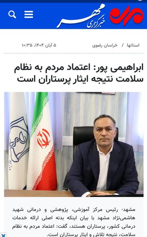 تهران – خبرگزاری مهر: در گفتوگویی اختصاصی با خبرگزاری مهر، ریاست محترم مرکز آموزشی، پژوهشی و درمانی شهید هاشمینژاد با اشاره به دستاوردهای اخیر این مرکز در حوزه خدمات درمانی و پژوهشی، بر ارتقای کیفیت ارائه خدمات و رضایت بیماران تأکید کرد. وی ضمن قدردانی از تلاشهای شبانهروزی کادر پرستاری و درمانی گفت: موفقیتهای امروز نتیجه همدلی و تلاش جمعی همه کارکنان این مرکز است. mehrnews.com/x39qL6