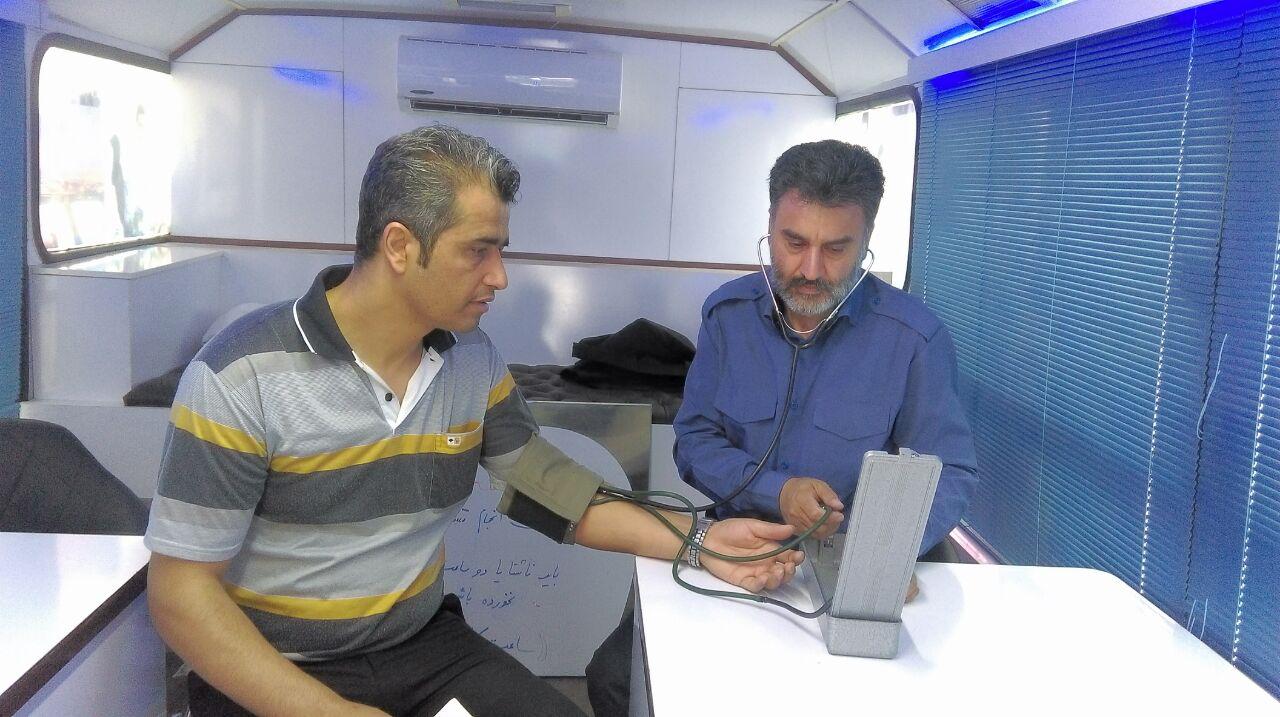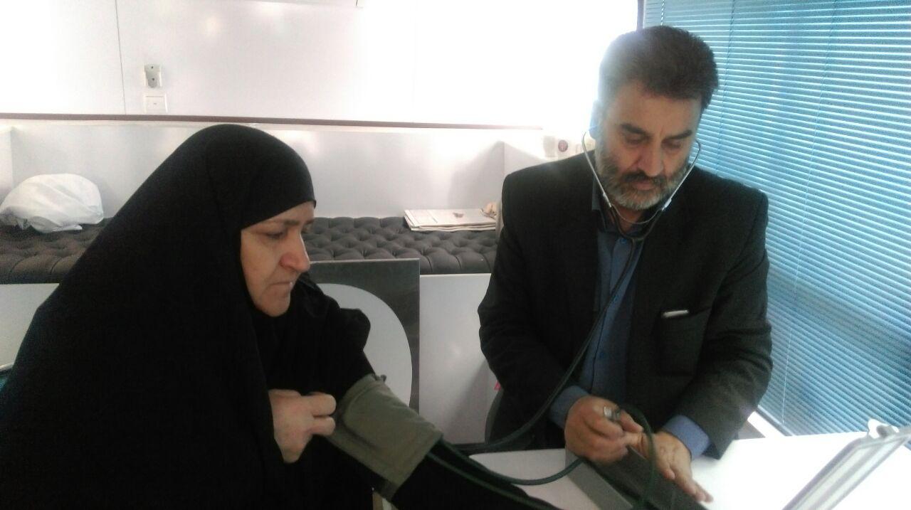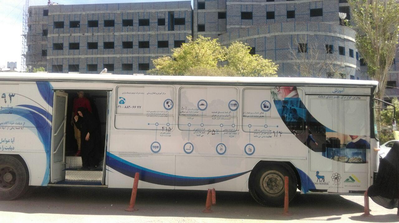 کنترل قند خون و فشار خون مراجعین به بیمارستان در اتوبوس سیار واقع در بیمارستان هاشمی نژاد
