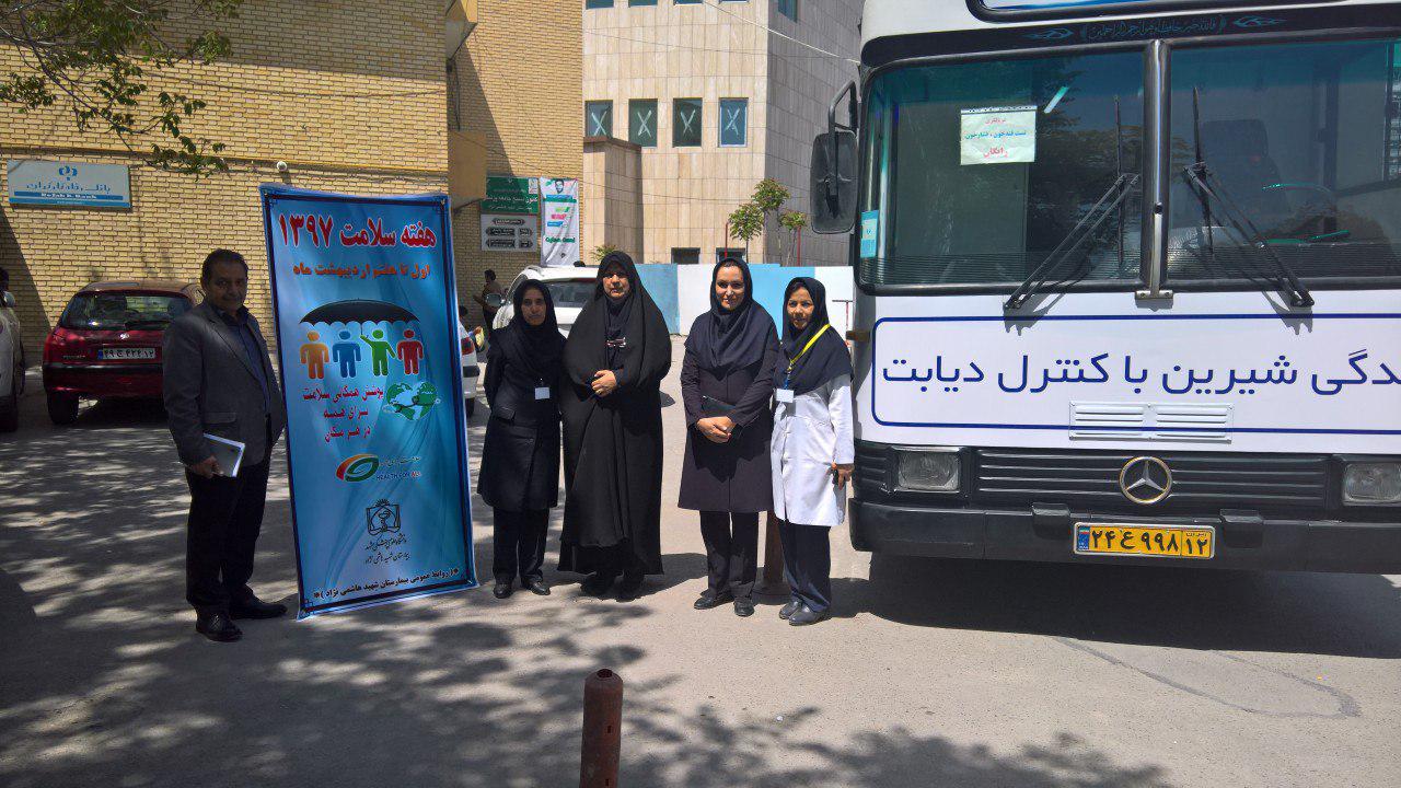 به مناسبت هفته سلامت دراولین روز آموزش سلامت همگانی بیمارستان شهید هاشمی نژاد پذیرای اتوبوس دیابت جهت کنترل قند و فشار رایگان مراجعین شد .