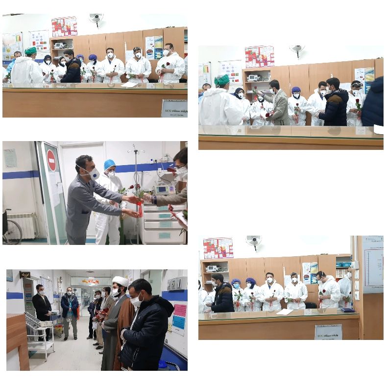 به گزارش روابط عمومی بیمارستان : با هماهنگی روابط عمومی بیمارستان ، جمعی از اعضای بسیج پایگاه شهید مطهری در روز نیمه شعبان ، با حضور در بیمارستان از پرسنل بخشهای حاد تنفسی با تقدیم شاخه گل ، تقدیرنامه و بسته های شکلات از زحمات مدافعان سلامت بیمارستان هاشمی نژاد تشکر و قدردانی نمودند.