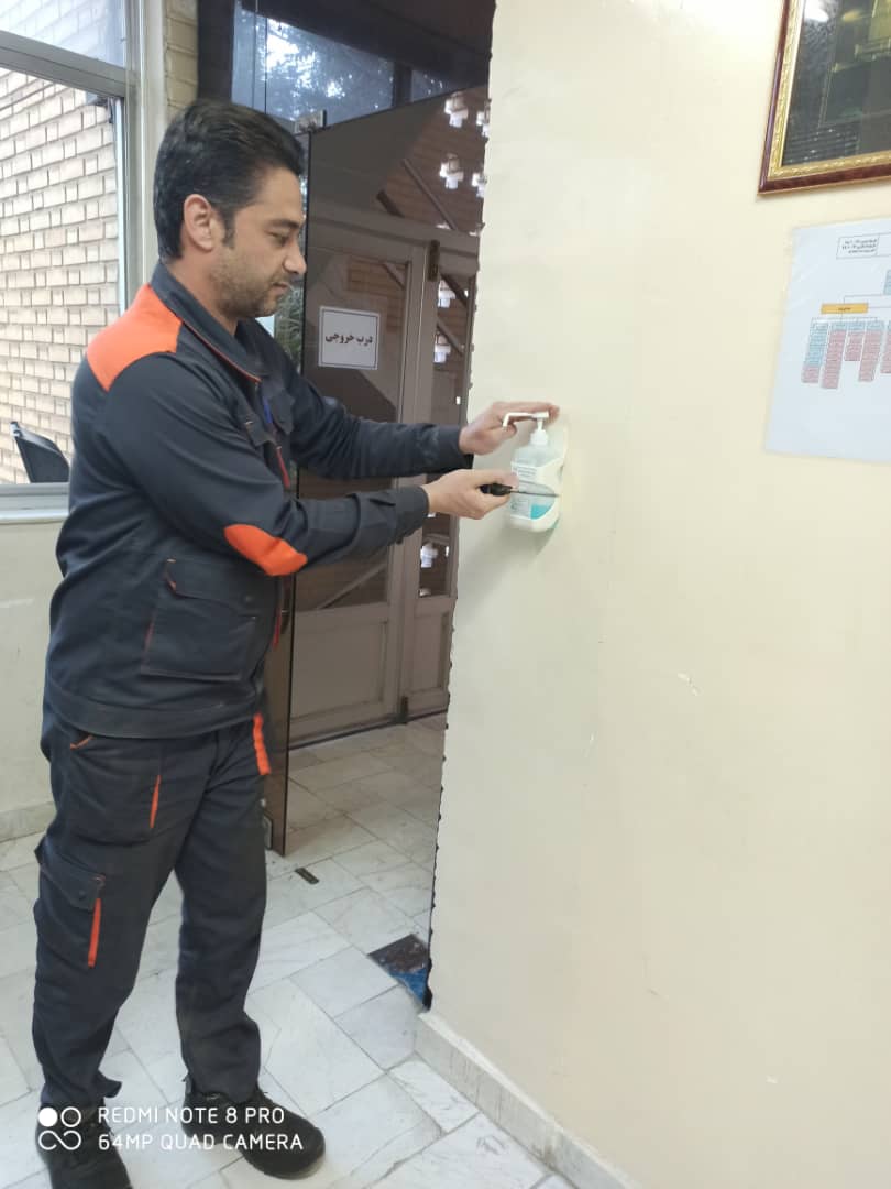 همچنین نصب محلولهای هندراب در لابی های بخش ها و واحدهای بیمارستان نصب گردید.