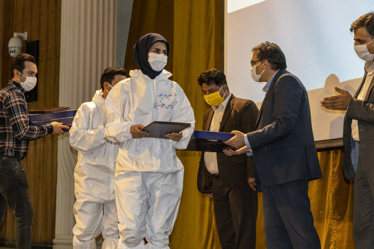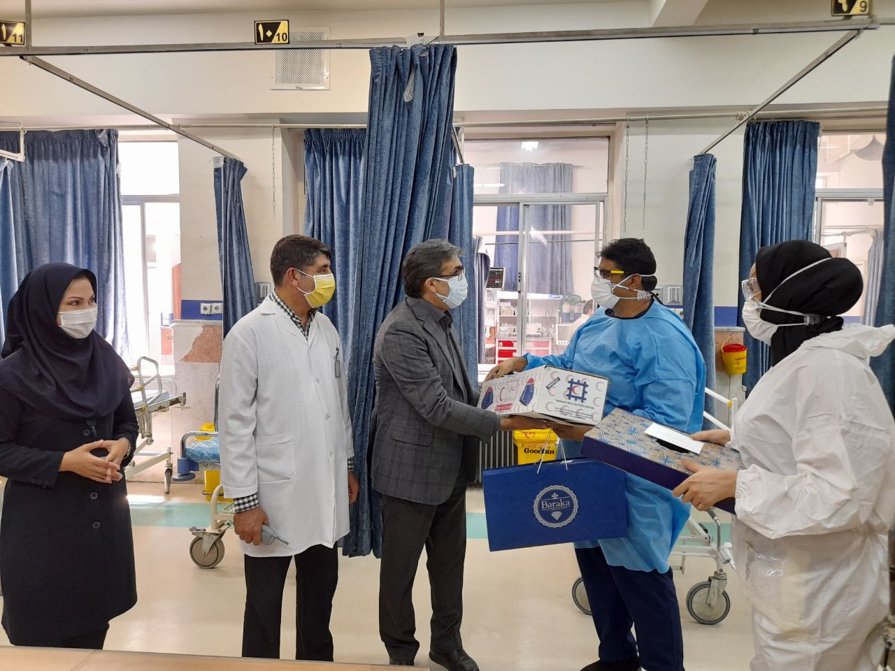 در این مراسم از (فرامرز فرشچی و پریسا دوده)، (مرتضی عابدیان و حانیه شکور) و (محمدعلی شهیدی و زینب رضاپور) ۳ زوج مدافع سلامت بیمارستانشهید هاشمی نژاد تقدیر بهعمل آمد.