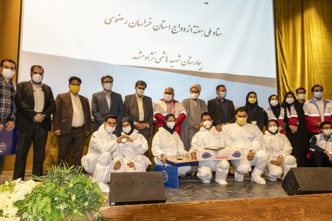 وی افزود: در برنامه امسال دانشگاه علوم پزشکی مشهد شاهد تقدیر از ۳ زوج مدافع سلامت اعم از پزشک، پرستار، هوشبری، اتاق عمل، آزمایشگاه و غیره از طرف جمعیت هلال احمر خراسان رضوی و اداره کل ورزش و جوانان استان بودیم تا تقدیری کوچک به واسطه خدمات بزرگ کادردرمانی کروناییها که در جهت درمان بیماران کرونایی جان خود را بهخطر انداختهاند صورت پذیرد.