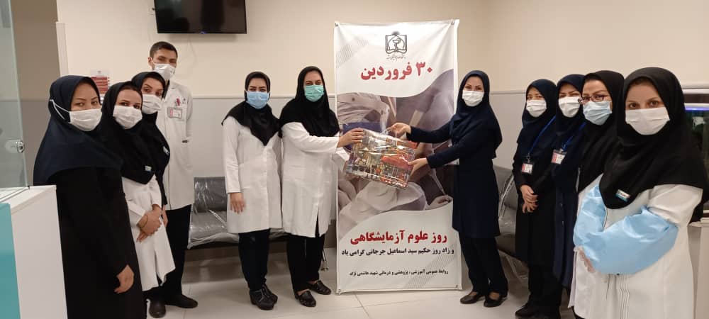 به همین مناسبت ریاست محترم بیمارستان ، معاون محترم آموزش سلامت و مدیر محترم بیمارستان، مترون محترم و حراست محترم بیمارستان و مدیر محترم پشتیبانی و همراهی سایر مسئولین ، با حضور در واحد آزمایشگاه ، این روز را به همکاران پرتلاش و دلسوز تبریک گفتند و با اهدا تابلو فرش و شکلات از زحمات این عزیزان تقدیر و قدردانی شد