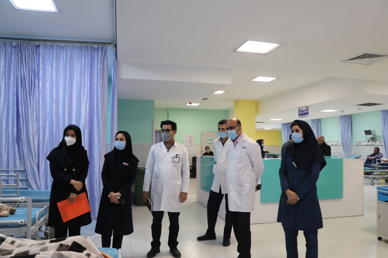 امروز مورخه 20 دی ماه با حضور کارشناسان محترم معاونت درمان آقای نجاری ارزیاب مدیریتی و خانم مصباح و خانم مصطفوی ارزیابان بالینی از بخش ها و واحدهای مختلف بیمارستان بازدید بعمل آمد.