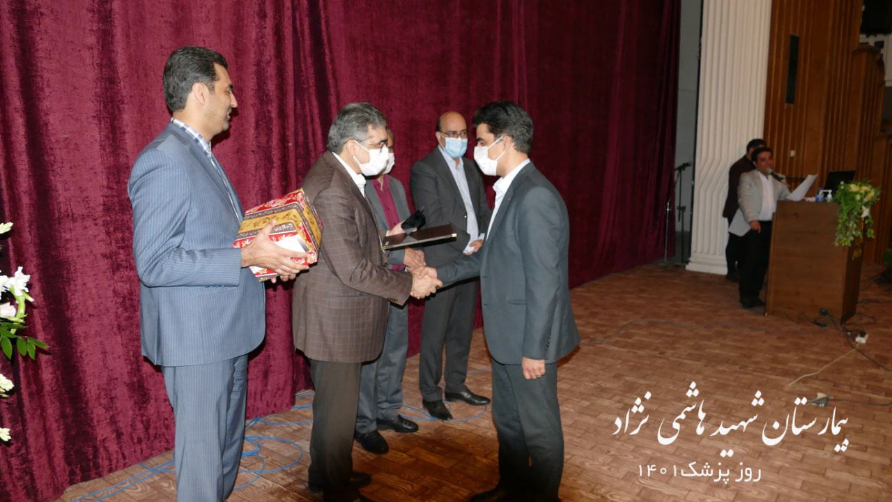 در ادامه این مراسم ، پزشکان نمونه بیمارستان معرفی و با اهدای تندیس و لوح تقدیر و هدیه از آنها تشکر و قدردانی شد.