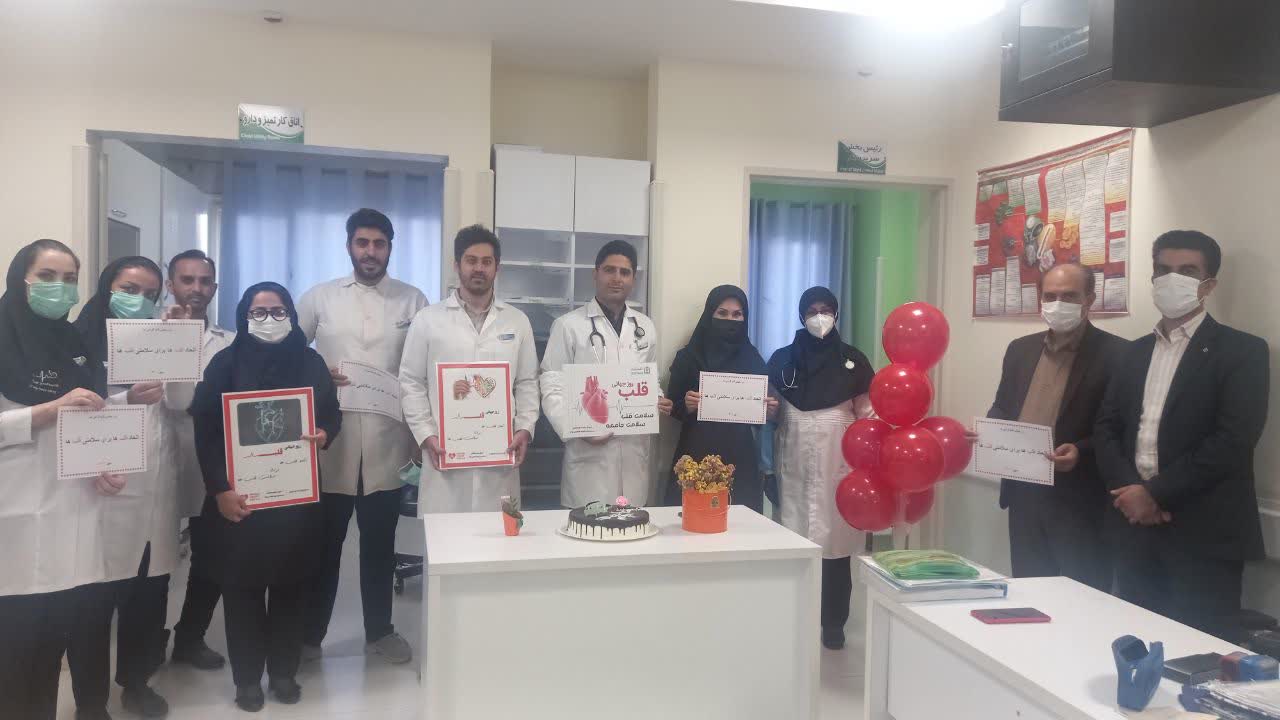 همزمان با هفته جهانی قلب معاون محترم درمان و مدیر محترم و همچنین مترون محترم بیمارستان با حضور در بخش قلب و مراسمی که به همین منظور توسط پرسنل بخش قلب آماده شده بود هفته جهانی قلب را به پزشکان وپرستاران این بخش تبریک گفتند و از زحمات تیم درمان بخش قلب تشکر و قدردانی نمودند.