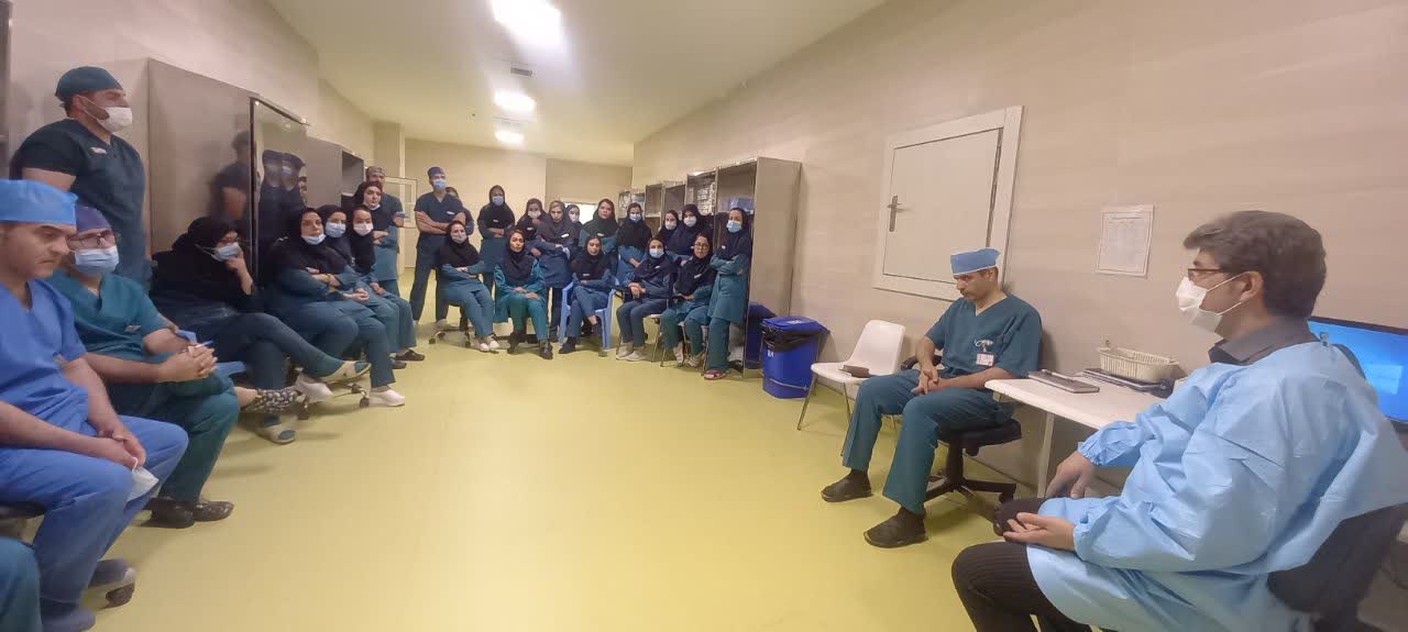 ین جلسه مورخه پنجشنبه ۲۴ فروردین ماه در اتاق عمل و با حضور پرستاران اتاق عمل ، کارشناسان بیهوشی و کمک بهیاران برگزار شد. در این جلسه موارد و چالش ها و اعتراضات در خصوص مبالغ دریافت شده توسط همکاران مطرح گردید. آقای دکتر شریفی پور مدیر پرستاری بیمارستان ، ضمن قبولی طاعات و عبادات و خدا قوت به همکاران ، تک تک موارد مطرح شده را با توجه به امتیازات و همچنین سطح نوع خدمات در جدول ارزیابی تعرفه گذاری ارسال شده از وزارتخانه را با توضیحات تکمیلی به همکاران ارائه دادند. سپس پیشنهادات و موارد اصلاحی مطرح شده توسط مدیر پرستاری مرکز پیگیری و با دانشگاه مکاتبه خواهد شد.