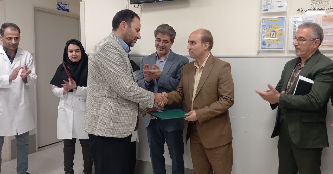 هر روز که خدمتت مایع نجات انسانی می شود آن روز روز توست به مناسبت روز جهانی آزمایشگاه امروز 30 فروردین ماه مدیر محترم بیمارستان به همراهی مدیر محترم پرستاری و همکاران محترم دفتر پرستاری و مدیر محترم پشتیبانی و مسئول محترم بسیج مرکز با حضور در بخش آزمایشگاه ضمن تبریک روز آزمایشگاه، از همکاران نمونه این بخش با اهدای لوح تقدیر ، تشکر شد.