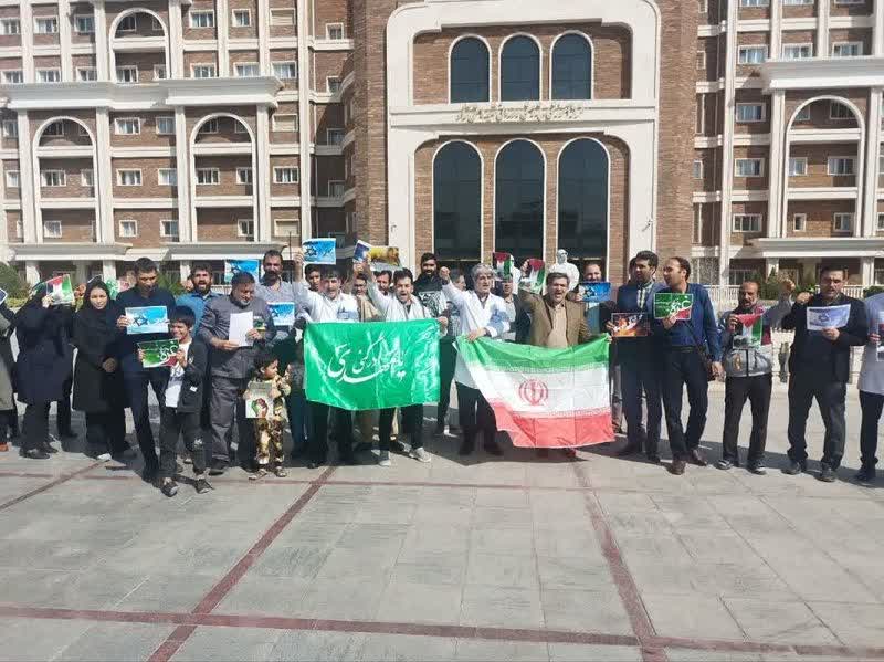 تجمع کادر درمان مرکز آموزشی، پژوهشی و درمانی شهید هاشمی نژاد در محوطه اصلی بیمارستان در محکومیت جنایات رژیم صهیونیستی اسرائیل
